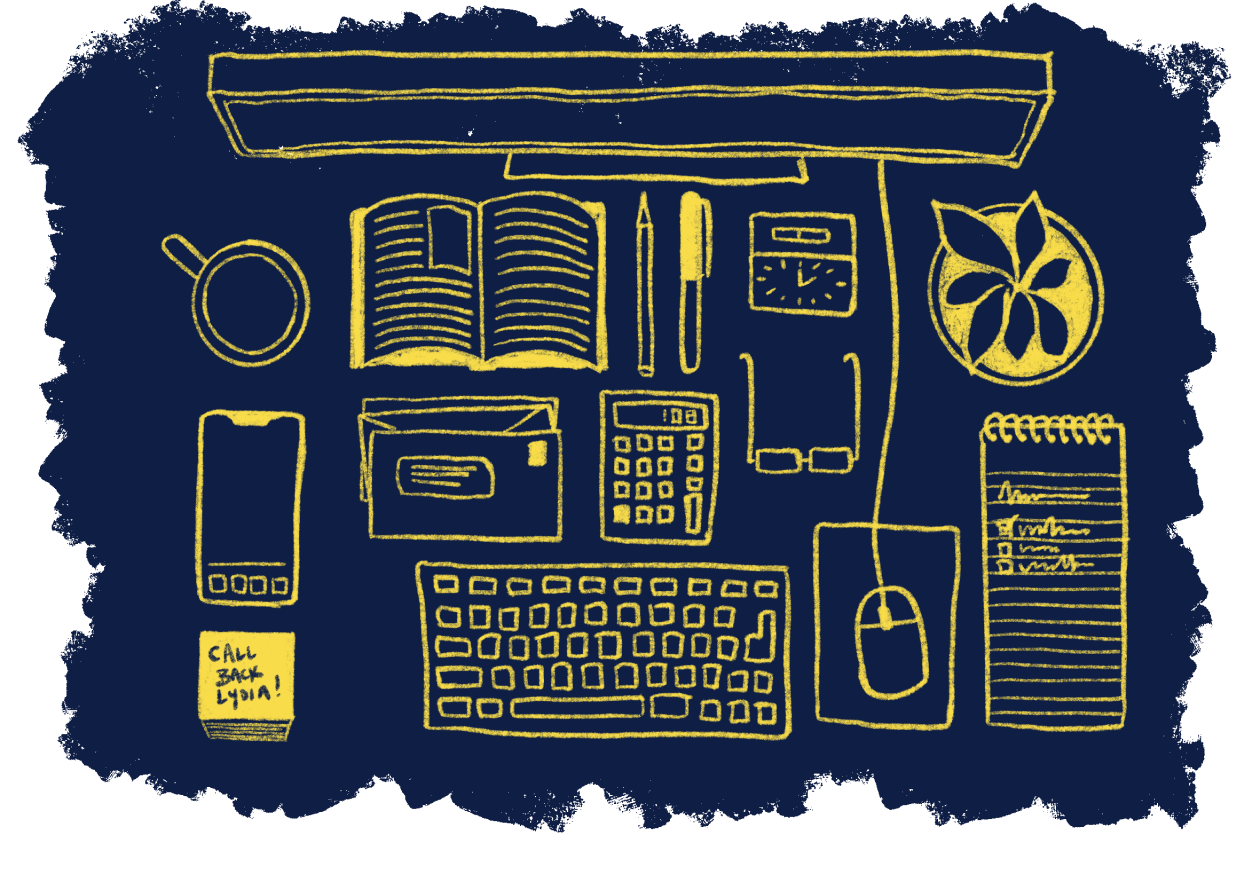 Now may be a good moment to take a quick glance at your own work station (whether thats your standing desk or the kitchen table) and imagine it as an extension of your nervous system. Does it represent a state of clarity and readiness? Remember, like Saul Steinberg, that doesn't necessarily mean a meticulously clean desk, but one that has been carefully curated to support the work that is most important to you right now.